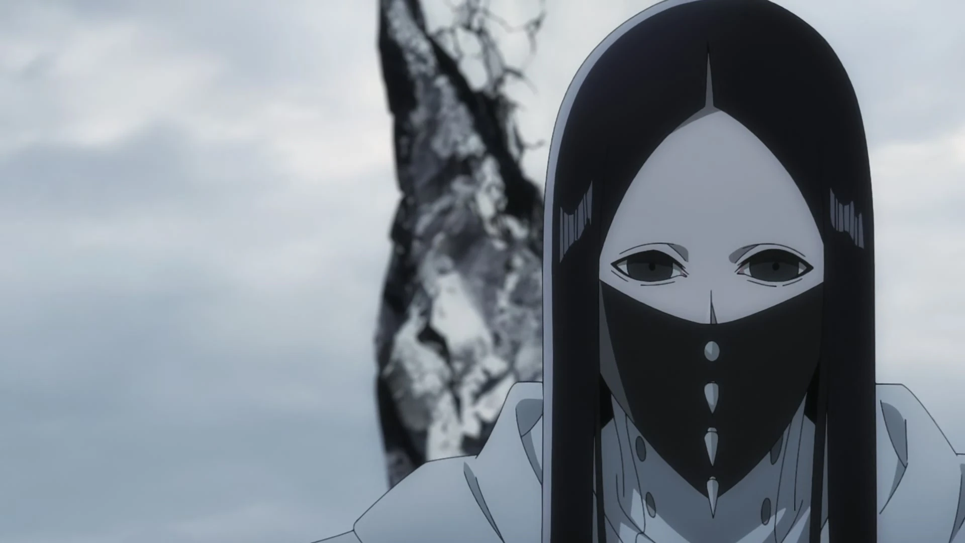 As Rukia slowly returns her body temperature to normal, Äs proclaims he only fears punishment by his majesty and losing his body completely as his mask crumbles, revealing a decaying mouth. Äs activates his Quincy: Vollständig, gaining a halo in the shape of a Wandenreich emblem, two streams of blood pouring from his eyes, and a cloak with a line of stitches down the middle. When Rukia realizes she cannot move, Äs reveals she is finally experiencing fear because she is looking at him and reveals his ability to be Tatarforas before explaining how she can no longer escape his gaze. As Äs tells Rukia to finally experience fear, Byakuya cuts through Tatarforas.