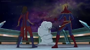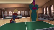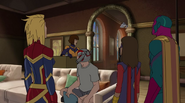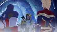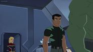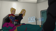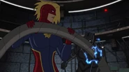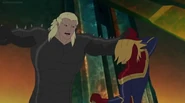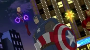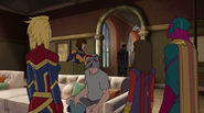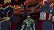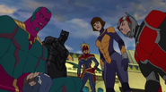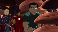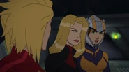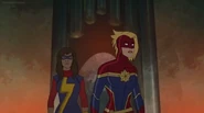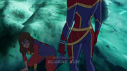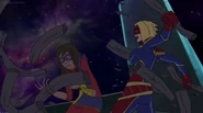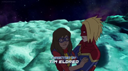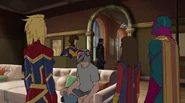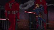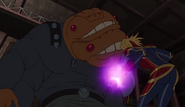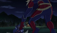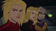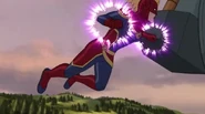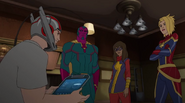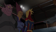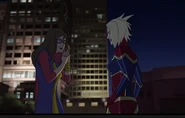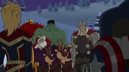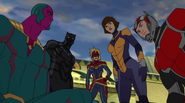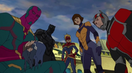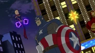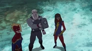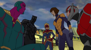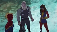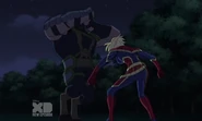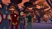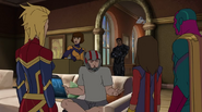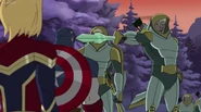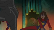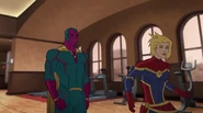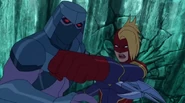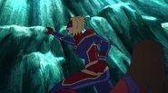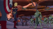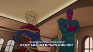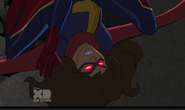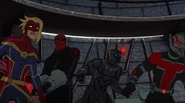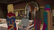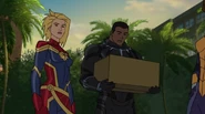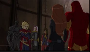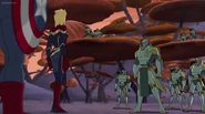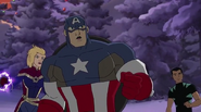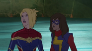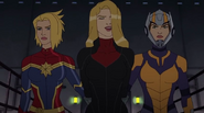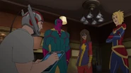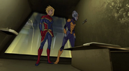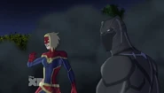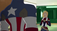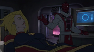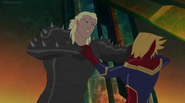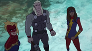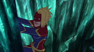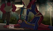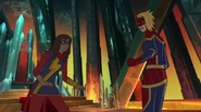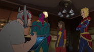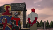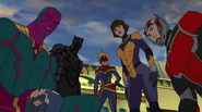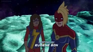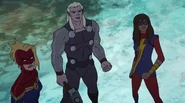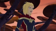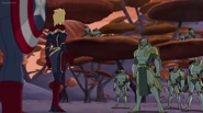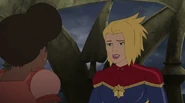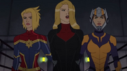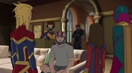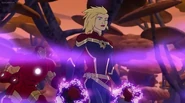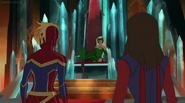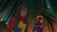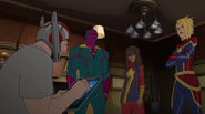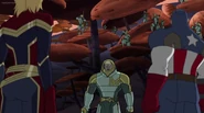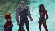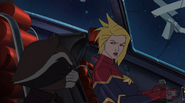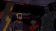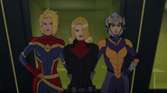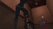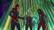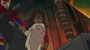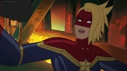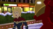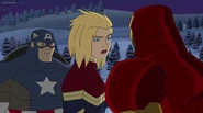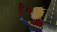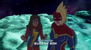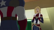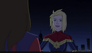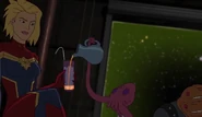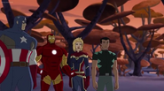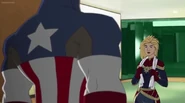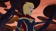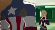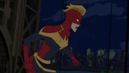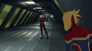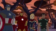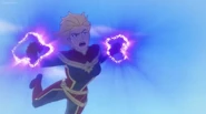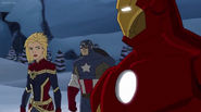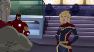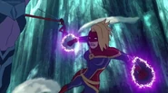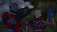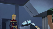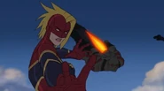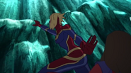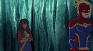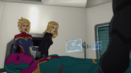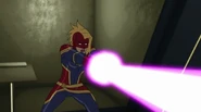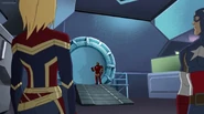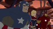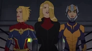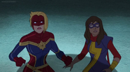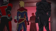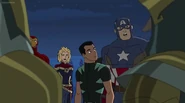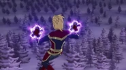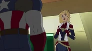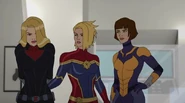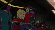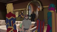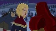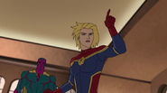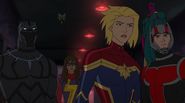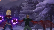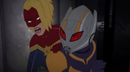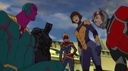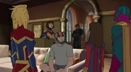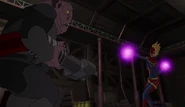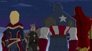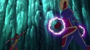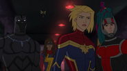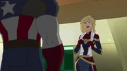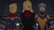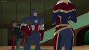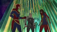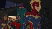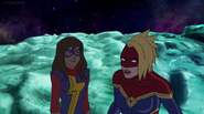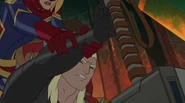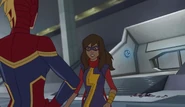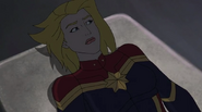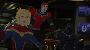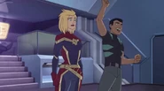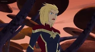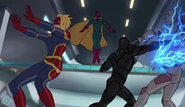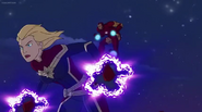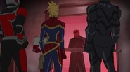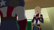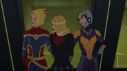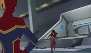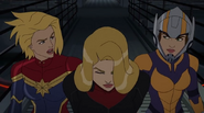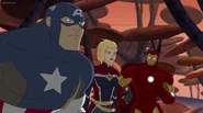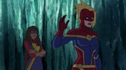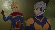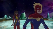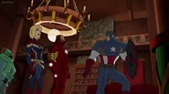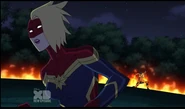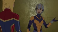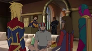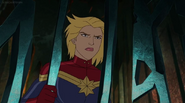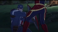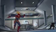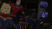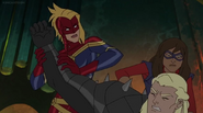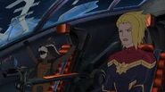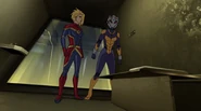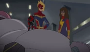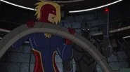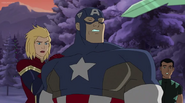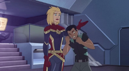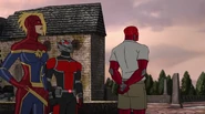 While Captain Marvel largely worked alone in protecting the galaxy, she did team up with the Avengers Captain America, Falcon, and Thor to defeat Galen-Kor, a Kree militant that intended to kidnap Inhumans and weaponize their powers to expand his empire. She and Captain America were especially prone to disagreement on how to handle the situation, but eventually put their differences aside to save Galen-Kor's abductees. Impressed, the Avengers offered Captain Marvel reserve membership on the team, which she was happy to consider.[3]