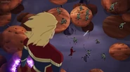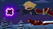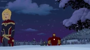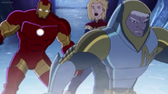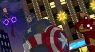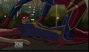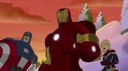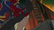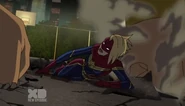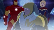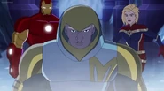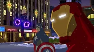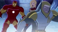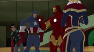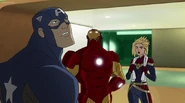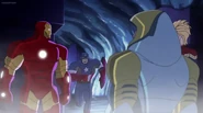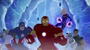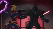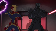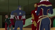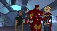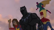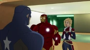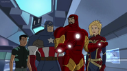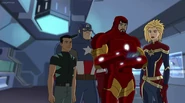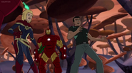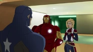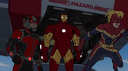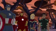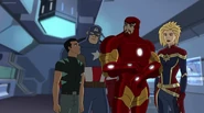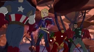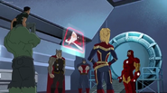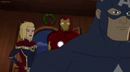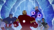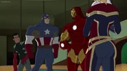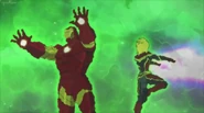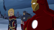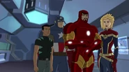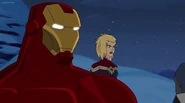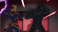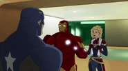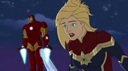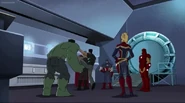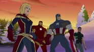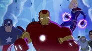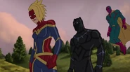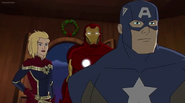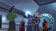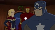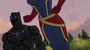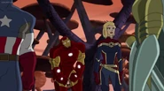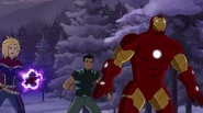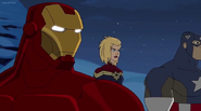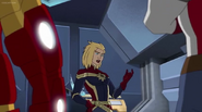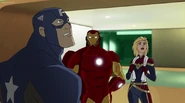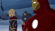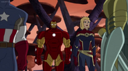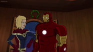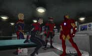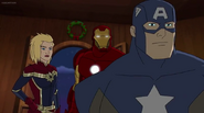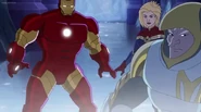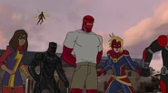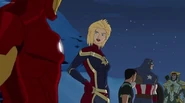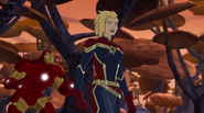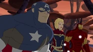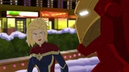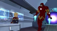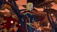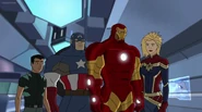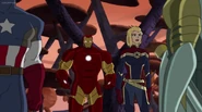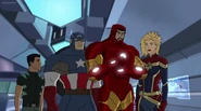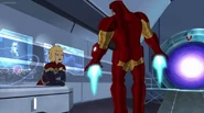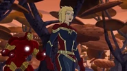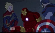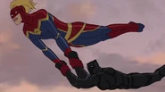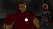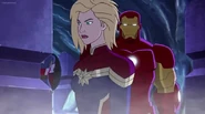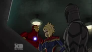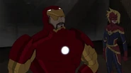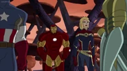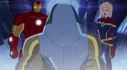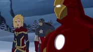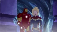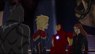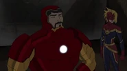 The Mighty Avengers and the Avengers worked together against Ultron and his army, but the sentries regenerated as fast as they were getting destroyed. Iron Man developed a plan and took Falcon, Ant-Man, Hawkeye, Black Panther, the Hulk, and Captain Marvel to his father's lab. Carol worked with the Panther and the Hulk to protect the lab from the Inhumans Karnak, Gorgon, and Inferno, while Ant-Man, Falcon, and Iron Man successfully broke Ultron's control over the Inhumans. However, while Ultron had the heroes distracted, he stole a new body for himself from Wakanda's armory and traveled to the source. All the Avengers pursued, and the villain was seemingly defeated. Unfortunately, Ultron managed to transfer himself into a new body at the last second: Iron Man's. Carol and her teammates were horrified to realize that Ultron had successfully hacked Iron Man's very mind. However, Doctor Strange arrived and cast a spell to keep Tony Stark alive and stop Ultron, but it kept him trapped in a limbo halfway between the Dark Dimension and the natural world. The Avengers vowed to honor their friend's sacrifice and find a way to bring him back. In the meantime, Carol formally accepted the offer to join the Avengers, her first order of business being to restore peace in New York City.[6]