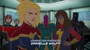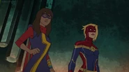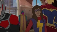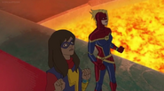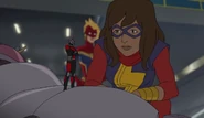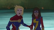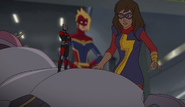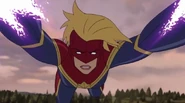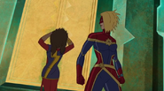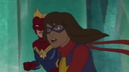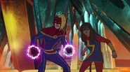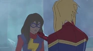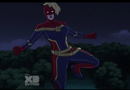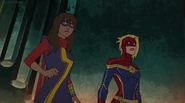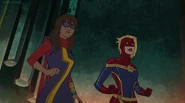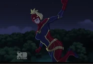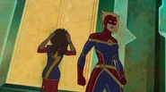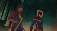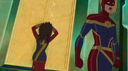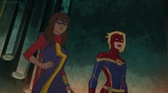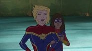 In addition to protecting the galaxy, Captain Marvel also became something of an icon and role model for young people and children on earth. A group of little girls went trick-or-treating in Captain Marvel costumes on Halloween, and when teenager Kamala Khan gained super powers of her own, she named her secret identity "Ms. Marvel" after Danvers.[1][2]