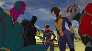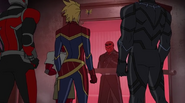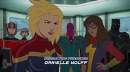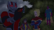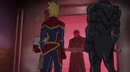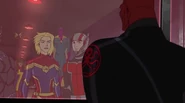 Later, the Avengers disassembled and cut their ties to the United States government after learning that government intended to register Inhumans. The team's government liaison, Truman Marsh, recruited a new group of heroes to form the government-sanctioned Mighty Avengers, including Carol, Black Panther, the Vision, Ant-Man, Red Hulk, Songbird, and the young Ms. Marvel, with whom Carol formed a unique bond. Marsh sent them to stop Baron von Strucker. They did so, but not without help from the Black Widow and Iron Man. Carol criticized the original team, calling them "vigilantes" and "renegades". Later, Marsh sent them to intercept three runaway Inhumans. They were met by the Avengers, who had come to warn the runaways of the raid. Carol tried to reason with Captain America, but his team and hers stood firm. Neither side would give in, and a brawl broke out between the two Avengers factions. Captain Marvel went toe to toe with Captain America. The battle eventually ended in favor of Carol's side. While Black Widow managed to escape, the rest of the renegade Avengers were taken into custody.[4]