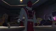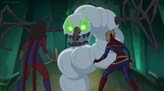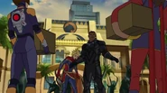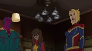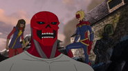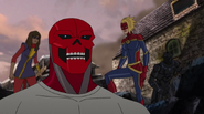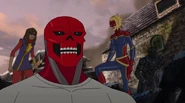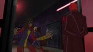 Soon after, it became apparent that the Inhuman registry had never been intended to protect people; in fact, any registered Inhuman became a target of mind control. Marsh attempted to force Ms. Marvel to register, despite the fact she had already vowed her loyalty to him and the United States government. Shocked, the older heroes on the Mighty Avengers decided this was the last straw. While the girl went into hiding, her teammates quit working for Marsh and sought out the other Avengers team, now also joined by Medusa and Black Bolt. Unfortunately, by the time Captain Marvel found the girl, it was too late and Ms. Marvel had already succumbed to mind control. Carol tried to break Marsh's hold on Ms. Marvel, reminding the girl of how much she admired Captain Marvel, but had no success. Ms. Marvel was eventually freed when Vision removed the registration device. Carol and all the other Avengers returned to Avengers Tower, only to find Marsh there waiting. She gasped when she sees Marsh morph into Ultron. The real Truman Marsh was long dead and Ultron had been manipulating everyone all along, and declared he was finally ready to take over the world with his army of sentries and mind-controlled Inhumans.[5]