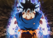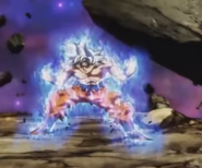- Invisible Eye Blast – Goku has the ability to shoot an invisible blast of ki out of his eyes. He uses this twice in the anime (once in the manga). The first (and only time in the manga) was when he used it to dig a hole in the Namekian ground to bury Vegeta's corpse in, after he was killed by Frieza. The second was during the battle against Omega Shenron, when Super Saiyan 4 Gogeta used it to knock Omega several feet back. It is likely that this move is rather weak, as even as a Super Saiyan 4, after fusing with Vegeta, it did nothing but stagger Omega, justifying why he did not use it in any other battles.